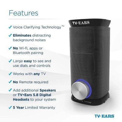 TV Ears Dr Recommended Wireless Voice Clarifying TV Speaker – Voice Clarifying and Home Theater Settings for Hearing Impaired TV Viewers