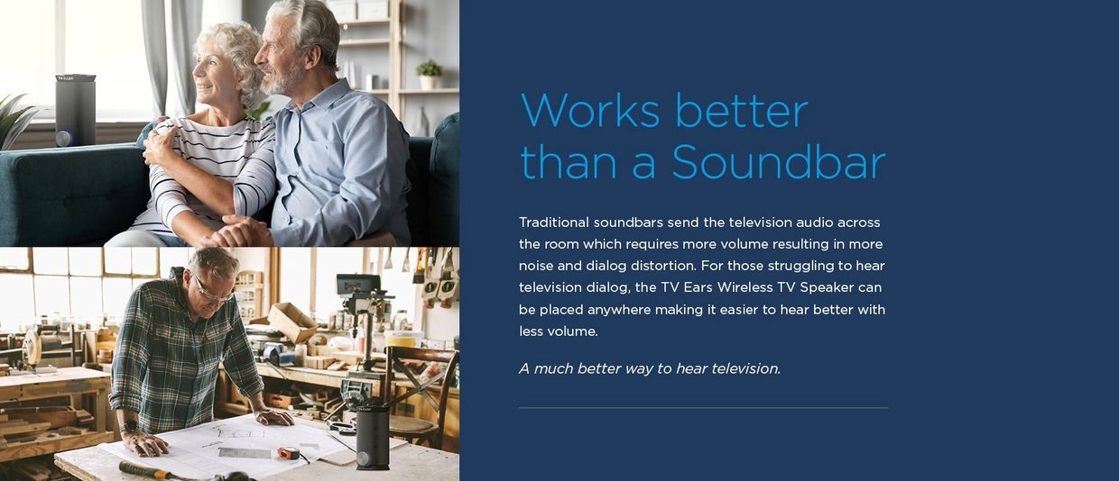 Better than a traditional Soundbar. Crystal Clear, High quality TV audio …. where you want it, when you want it.